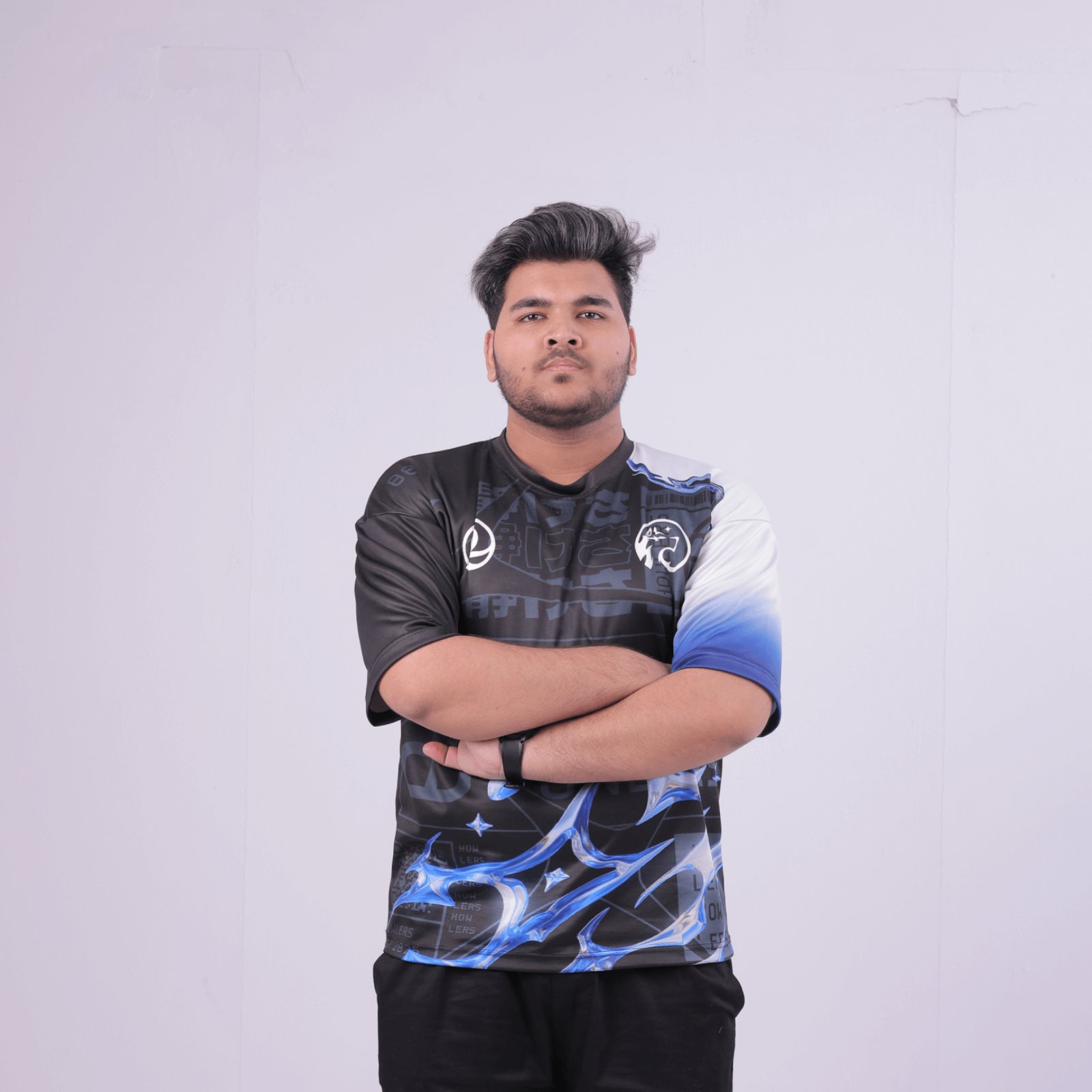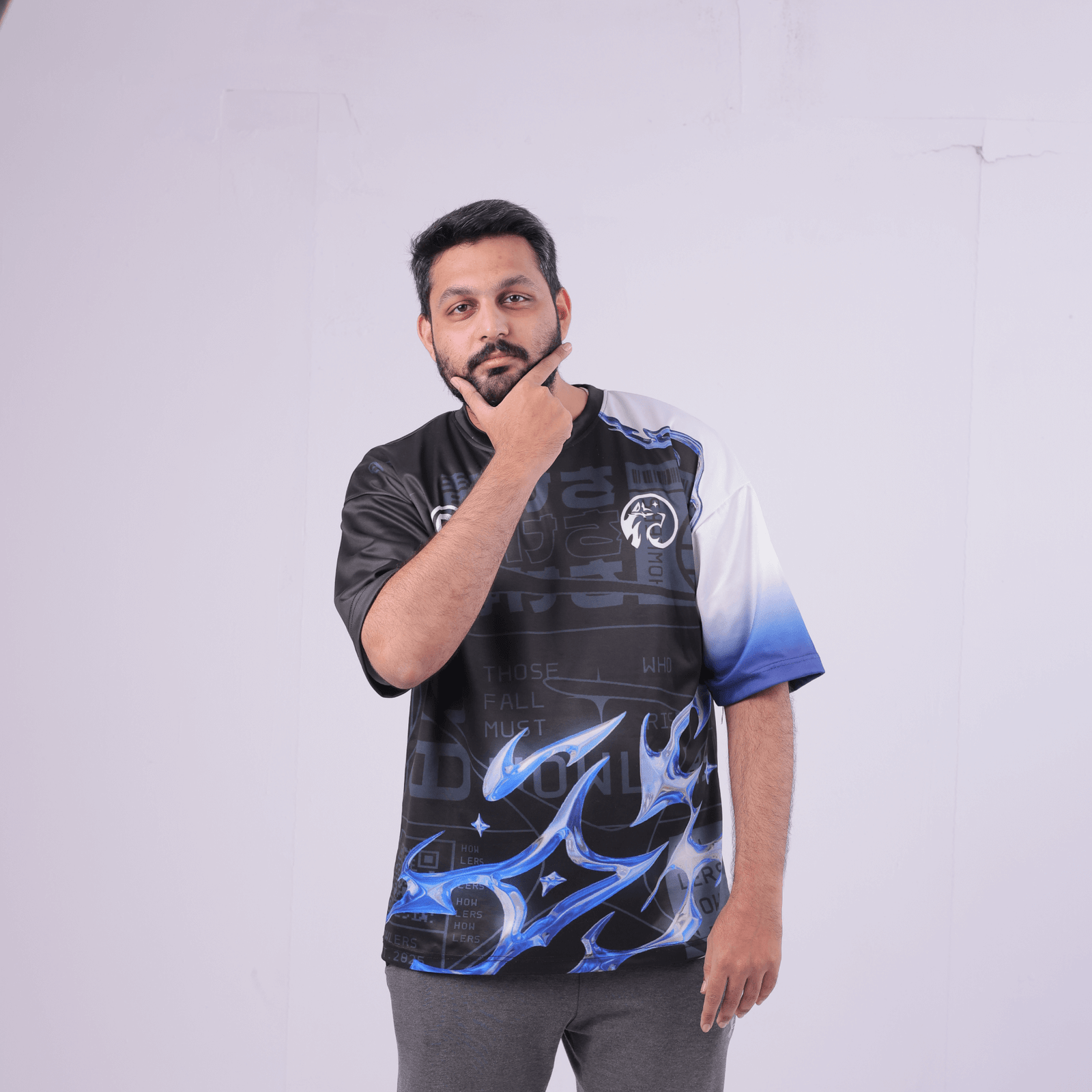 Designed for players who demand freedom of movement and a bold visual edge, this silhouette blends tech-driven graphics, deep blacks, electric blue energy arcs, and smooth gradient detailing into a piece built to turn heads anywhere you go.